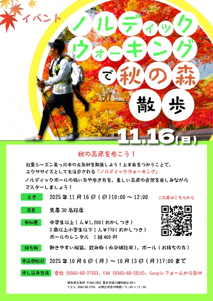 ノルディックウォーキングで秋の森散歩 参加募集のお知らせ