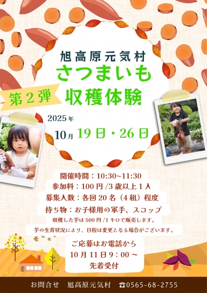 10月19日(日)・10月26日(日) さつまいも収穫体験 開催のおしらせ