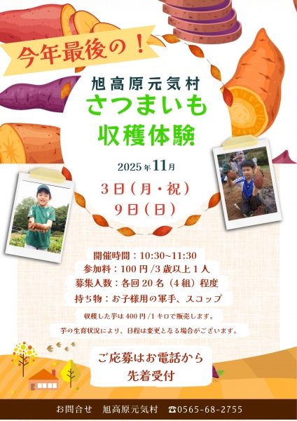 旭高原自然活用村(元気村)施設の利用にかかる団体予約申し込み受付開始日変更のお知らせ