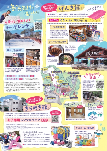 12月6日(土)にオープンを予定する雪そりゲレンデの設営に伴い、げんき館で開催される体験教室及びきらめき館1階の