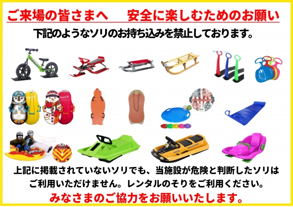 当施設側が危険と判断したソリは使用できませんのでご了承ください。